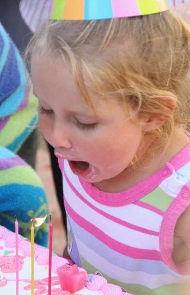 This is me on my fifth birthday with frosting all over my face.
